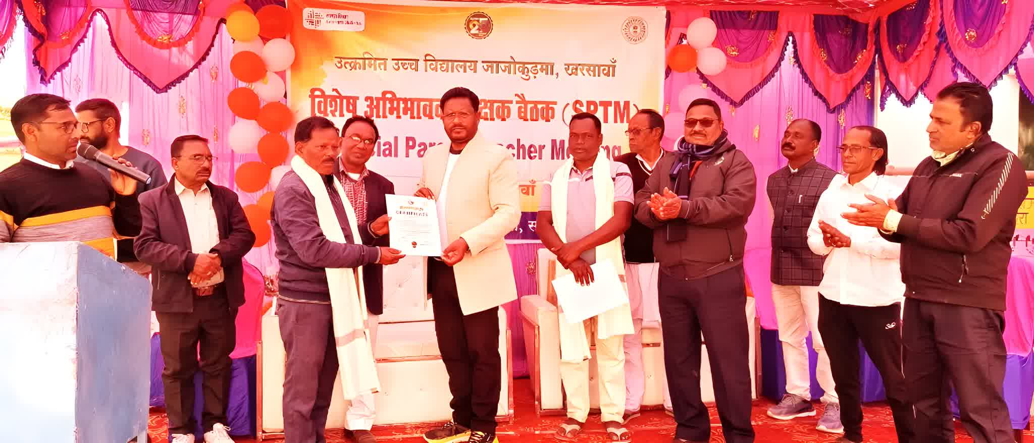 खरसावां प्रखंड अंतर्गत उत्क्रमित उच्च विद्यालय जोजोकुडमा में विशेष अभिभावक-शिक्षक बैठक (एसपीटीएम) का आयोजन किया गया। इस अवसर पर खरसावां विधायक दशरथ गागराई बतौर मुख्य अतिथि उपस्थित रहे। बैठक में विद्यालय प्रबंधन, शिक्षक-शिक्षिकाओं एवं अभिभावकों की सक्रिय भागीदारी देखने को मिली। मौके पर श्री गागराई ने विद्यार्थियों की शैक्षणिक गुणवत्ता, नियमित उपस्थिति, अनुशासन एवं अभिभावकों की भूमिका पर जोर देते हुए कहा कि बच्चों के सर्वांगीण विकास के लिए शिक्षक और अभिभावकों के बीच बेहतर समन्वय आवश्यक है। उन्होंने विद्यालय की बुनियादी सुविधाओं, शैक्षणिक संसाधनों और छात्र-छात्राओं की समस्याओं की जानकारी ली तथा समाधान का भरोसा दिलाया। बैठक में शिक्षकों ने छात्रों की प्रगति रिपोर्ट, सीखने की चुनौतियों और सुधारात्मक उपायों पर चर्चा की। अभिभावकों ने भी अपनी समस्याएं और सुझाव साझा किए। कार्यक्रम के अंत में विद्यालय परिवार द्वारा विधायक का आभार व्यक्त किया गया। इस दौरान पीएसटीएम में प्रत्येक कक्षा के उत्कृष्ट प्रदर्शन करने वाले छात्र सर्टिर्फिकेट और उनके अभिभावकों को प्रशस्ति पत्र देकर सम्मानित किया गया। यह बैठक विद्यालय में शैक्षणिक माहौल को सुदृढ़ करने एवं विद्यार्थियों के उज्ज्वल भविष्य की दिशा में एक महत्वपूर्ण पहल रही। इस बैठक में मुख्य रूप से खरसावां विधायक दशरथ गागराई, प्रखंड शिक्षा प्रसार पदाधिकारी संजय कुमार जोशी, बीपीओ पंकज कुमार महतो, शंशाक शेखर सिंहदेव सहित सीआरपी, स्कूल के शिक्षक, अभिभावक आदि उपस्थित थे।