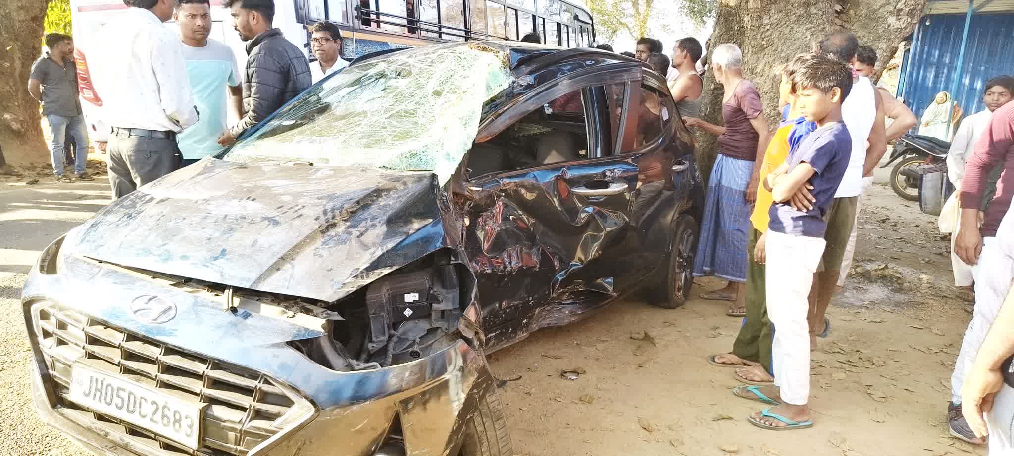 प्रत्यक्षदर्शियों के अनुसार कार काफी तेज गति में थी, तभी चालक ने नियंत्रण खो दिया और वाहन सीधे पेड़ से टकरा गया। दुर्घटना इतनी भीषण थी कि कार का एक हिस्सा पूरी तरह क्षतिग्रस्त हो गया। सड़क पर मौजूद अन्य लोग भी बाल-बाल बच गए। घटना की सूचना मिलते ही स्थानीय लोग मौके पर पहुंचे और चालक को सुरक्षित बाहर निकाला। बताया जा रहा है कि चालक को हल्की चोटें आई हैं, लेकिन वह पूरी तरह सुरक्षित है। हादसे के बाद कुछ समय के लिए सड़क पर यातायात बाधित रहा। मिली जानकारी के अनुसार खरसावां निवासी रतन लाल साहु के पुत्र कृणाल कुमार साहु अपने हुंडई ग्रैड आई 10 निओस कार संख्या-जेएच-05 डीसी 2683 से दोपहर 3 बजे अपने घर से जमशेदपुर के लिए निकले थे। कार की रफ्तार काफी अधिक होने के कारण खरसावां-सरायकेला मुख्य मार्ग के पांचगछिया के समीप अनियंत्रित होकर नीम के पेड़ से टकरा गई। इस जोरदार टक्कर से कार के परखच्चे उड़ गए। गनीमत रहा कि घटना स्थल पर पांच मिनट पहले ही नीम पेड के नीचे बैठे खरसावां के पांचगछिया निवासी गणेश गोप (66) एवं उसकी पत्नी घासनी गोप (60) तथा उनकी पांच वर्षिया नतनी वर्षा गोप के साथ बैठे थे। घटना से पहले वे उठकर वे अपने आगन गए थे। इसी दौरान तेज रफ्तार कार अनियंत्रित होकर सड़क किनारे नीम के पेड़ से जा टकराई। टक्कर इतनी जबरदस्त थी कि कार के परखच्चे उड़ गए। इसकी सूचना पर पुलिस भी मौके पर पहुंची और क्षतिग्रस्त वाहन को हटवाकर यातायात सामान्य कराया। पुलिस दुर्घटना के कारणों की जांच कर रही है। प्रारंभिक तौर पर तेज रफ्तार और वाहन पर नियंत्रण खोना हादसे का कारण माना जा रहा है। स्थानीय लोगों ने सड़क पर वाहनों की तेज रफ्तार पर चिंता जताते हुए प्रशासन से रबर स्पीड बम्पर लगाने की मांग की है।