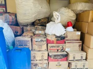 विगत कई माह से सरायकेला जिला में पुलिस अधीक्षक सरायकेला-खरसावां के निर्देशानुसार अवैध शराब निर्माण एंव विक्री तथा मादक पदार्थों की बरामदगी हेतु निरंतर छापामारी अभियान चलाया जा रहा है । इसी छपामारी के क्रम में पुलिस अधीक्षक, सरायकेला-खरसावां को अवैध विदेशी शराब निर्माण एंव विक्री से संबंधित मिले गुप्त सूचना के आधार पर दिनांक-15.10. 2025 को अनुमण्डल पुलिस पदाधिकारी सरायकेला के निर्देशन में छापामारी दल का गठन करते हुए सरायकेला थाना अंतर्गत सरायकेला थाना से करीब 15 कि0मी0 दूर ग्राम-हाथीमारा के निकट पहाड़ एंव जंगल के बीच स्थित कृष्णा हेस्सा के घर के पास पहुँच कर छापामारी दल के द्वारा घेराबंदी करते हए कृष्णा हेस्सा के करकटशीट के मकान की घेराबंदी करते हुए छापामारी किया गया। छापामारी के क्रम में पुलिस को देखकर नकली विदेशी शराब बनाने वाले व्यक्ति भागने लगे जिसे छापामारी दल के द्वारा खदेड़कर 02 (दो) व्यक्तियो (1) दिपक नापित उम्र करीब 37 वर्ष, पिता- स्व० मांगी लाल नापित, ग्राम-पदमपुर, एंव (2) लुगनी हेम्ब्रम, उम्र-करीब 32 वर्ष पे० स्व० चम्बु हेम्ब्रम, ग्राम-जोजोडीह दोनो थाना-खरसावाँ, जिला-सरायकेला-खरसावां को गिरफ्तार किया गया। छापामारी के क्रम में कृष्णा हेस्सा के घर एंव आसपास से (1.) Mc Dowel 375 ml का 120 पीस (2.) Mc Dowel 180 ml का 96 पीस (3.) Royal Stag 375 ml का 192 पीस (4.) Royal Stag 180 ml का 240 पीस (5.) Iconic White 375 ml का 24 पीस (6.) Iconic White 180 ml का 48 पीस (7.) King Gold 750 ml का 732 पीस (8.) विभिन्न ब्रान्ड का करीब 20 के०जी० ढक्कन (कैप)(9.) उजला रंग का बिना ढक्कन का खाली पलास्टीक बोतल 556 पीस (10) बिना ढक्कन का शीशा का 375 एम० एल० का खाली बोतल 67 पीस (11) बिना ढक्कन का शीशा का 180 एम० एल० का खाली बोतल 83 पीस (12) King Gold का स्टीकर 225 पीस (13) Mc Dowel का स्टीकर 460 पीस (14) Royal Challenger का स्टीकर 20 पीस (15) Black Tiger का स्टीकर 425 पीस (16) स्पेद रंग का कुपी 02 पीस (17) 30 लीटर का ब्लू रंग का एक जार (18) 750 लीटर का पानी टंकी ब्लू रंग का (19) 20 लीटर का प्लास्टीक का जार (20) प्लास्टीक का काला-पीला रंग का बाल्टी 02 (दो) पीस (21) 200 लीटर का नीला रंग का प्लास्टीक का ड्रम 02 पीस (22) लाल रंग का प्लास्टीक का मग 01 पीस (23) Royal Challenger 180 ml का 144 पीस (24) Royal Challenger 375 ml का 168 पीस (25) Iconic White 180 ml का 96 पीस (26) Iconic White 375 ml का 72 पीस (27) Mc Dowel 180 ml का 144 पीस (28) Mc Dowel 375 ml का 48 पीस (29) Royal Stag 375 ml का 48 पीस (30) King Gold 750 ml का 1440 पीस (कुल-2019 लीटर) बरामद कर जप्त किया गया।