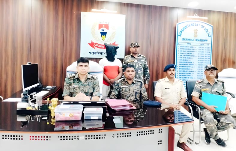 खरसावां थाना क्षेत्र में पुलिस ने अपराध की योजना बना रहे दो युवकों को पकड़ लिया। जिनमें एक नाबालिग भी शामिल है। पुलिस ने इनके पास से देशी कट्टा, चार गोली, एंड्रॉयड मोबाइल और एक बुलेट मोटरसाइकिल बरामद की है। इस कार्रवाई की जानकारी पुलिस अधीक्षक मुकेश कुमार लुणायत ने प्रेस कॉन्फ्रेंस कर दी। उन्होंने बताया कि गुप्त सूचना मिली थी कि कुछ लोग अपराध को अंजाम देने के लिए हथियार के साथ घूम रहे हैं। सूचना पर एसडीपीओ के नेतृत्व में एक टीम का गठन किया गया। जैसे ही पुलिस की टीम राजकीय प्लस टू उच्च विधालय खरसावां पहुंची, बाईक सवार दो व्यक्ति पुलिस को देखकर भागने लगे। पुलिस ने दौड़ाकर पकड़ा और तलाशी लेने पर अभियुक्त राजकिशोर प्रमाणिक के पास से देशी कट्टा, चार गोली, ओपो का एंड्रॉयड मोबाइल, गमछा और रॉयल एनफील्ड 350 मोटरसाइकिल बरामद किया। एसपी ने बताया कि गिरफ्तार अभियुक्त राजकिशोर प्रमाणिक उर्फ द्वारपाल का आपराधिक इतिहास भी सामने आया है। उसपर पहले भी खरसावां थाना कांड संख्या-47/18, धारा 399/402/414 भादवि दर्ज है। साथ ही घटना में शामिल एक विधि विरुद्ध बालक को भी निरुद्ध किया गया है। बरामद सामानों में एक देशी कट्टा, चार गोली, ओपो कंपनी का एंड्रॉयड मोबाइल, एक बुलेट मोटरसाइकिल और एक गमछा शामिल है. इस पूरी कार्रवाई में थाना प्रभारी गौरव कुमार, आमदा ओपी प्रभारी रमन कुमार विश्वकर्मा, पुअनि० प्रकाश कुमार, सअनि० आनन्द कुमार, सअनि० नागेश्वर सिंह मुण्डा और रिजर्व गार्ड खरसावां के जवान शामिल थे।