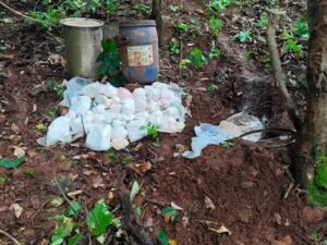 कुचाई के मासीबेरा हिल एरिया के आस-पास जंगली पहाड़ी क्षेत्रों में चला सर्च अभियान, नक्सलियों द्वारा पूर्व में छिपाकर रखे अमोनिया नाईट्रेट पाउडर, वैसिलीन पेट्रोलियम जैली बरामद,