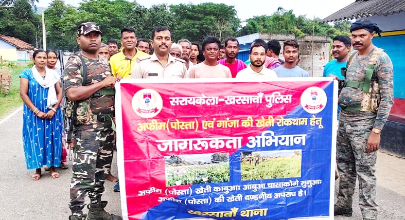 सरायकेला-खरसावाँ पुलिस द्वारा वर्तमान फ़सलीय वर्ष में जिलांतर्गत अफीम की अवैध खेती की संभावना को नगण्य करने हेतु प्री कल्टीवेशन ड्राइव चलाया जा रहा है।इस अभियान के दौरान जिला पुलिस द्वारा विभिन्न माध्यमों से अफीम की अवैध खेती की रोकथाम तथा वैकल्पिक कृषि को बढ़ावा देने हेतु आमजन को जागरूक किया जाएगा।