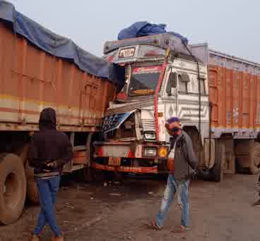राजनगर सड़क पर तितिरविलि पुल के पास दो मलबहक बड़े ट्रक आपस में भिड़, टक्कर इतनी जबरदस्त थी कि दोनों ट्रकों के अगले हिस्से बुरी तरह क्षतिग्रस्त, हो गए। दुर्घटना में एक ट्रक चालक को आई गंभीर चोट,