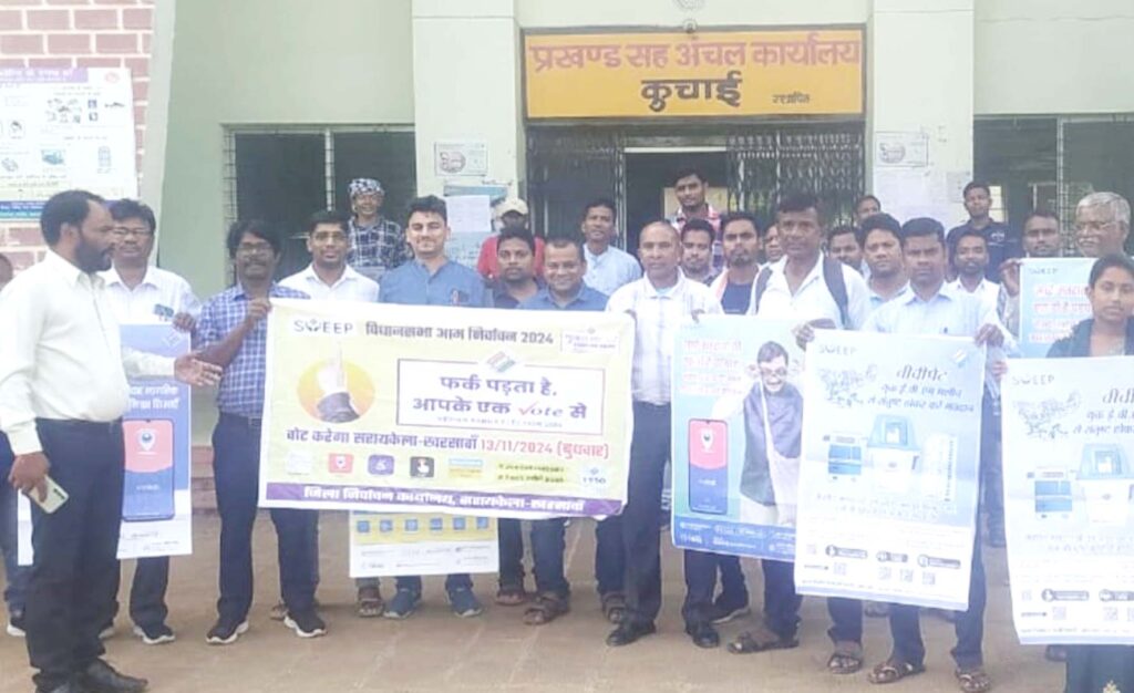 Jharkhand Assembly Election झारखंड विधानसभा चुनाव में अधिक से अधिक मतदान के लिए जिला प्रशासन काफी सक्रिय दिख रहा है। जिसको लेकर कुचाई ब्लॉक मुख्यालय से बजार तक मतदाता जागरूकता रैली निकाली गई। वहीं लोगों को जागरूक किया गया। मतदाता जागरूकता रैली ब्लोक परिसर से लिकलकर कुचाई बजार का भ्रमण किया। साथ ही साथ स्कूल में विद्यार्थियों के माध्यम से पत्र लेखन कार्यक्रम का आयोजन करते हुए मतदाताओं को जागरूक करने हेतु प्रेरित किया गया। इस जागरूकता रैली में स्विप कोषांग के पदाधिकारी प्रखंड के कर्मी 15 में वित्त आयोग के कोडिनेटर पंकज कुमार ने कहा कि विधानसभा निर्वाचन होने वाला है। इसमें 18 वर्ष से अधिक उम्र के युवा बढ़-चढ़ कर हिस्सा लें और मतदान अवश्य करें जिससे स्वस्थ एवं मजबूत राष्ट्र का निर्माण हो सके। उन्होंने लोगों को निर्भीक एवं निष्पक्ष होकर स्वतंत्रता पूर्वक बिना प्रलोभन के चुनाव में अपने मत का प्रयोग करने के लिए प्रेरित किया। इसके साथ ही साथ 11 से 12 बजे के बीच में कुचाई प्रखंड के सभी विद्यालय उच्च विद्यालयों में अध्यनरत कक्षा 6 से 12 के छात्रों एवं छात्राओं के द्वारा एवं उनके लिए अपने माता-पिता के नाम मतदान करने हेतु पत्र लेखन का कार्यक्रम आयोजित किया गया। इसमें विद्यार्थियों द्वारा अपने पत्र को घर ले जाकर अपने माता-पिता को सौंपेंगे। साथ ही साथ उन्हें मतदान करने हेतु अनुरोध करेंगे इसका पत्र में उल्लेख किया गया है।