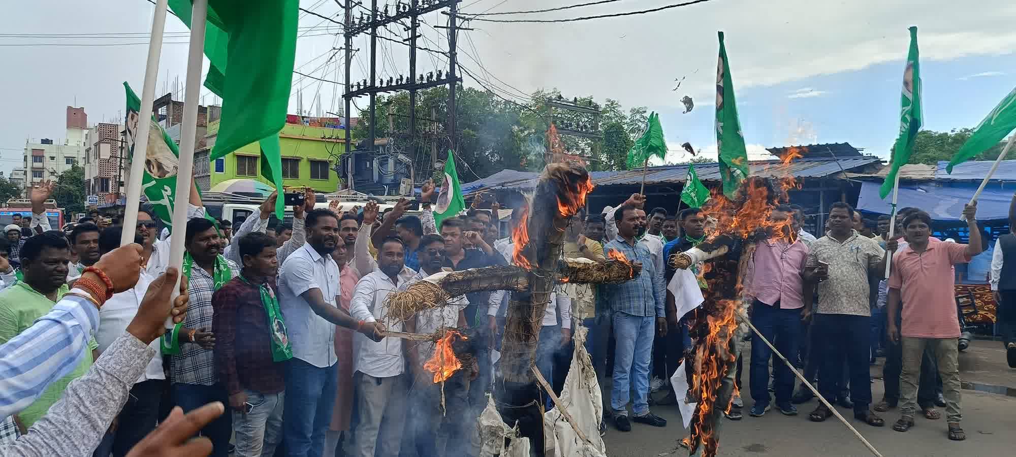 आदिवासियों को बरगलाने और दोहरी नीति अपनाने के आरोप में झामुमो ने सरायकेला मे पूर्व मुख्यमंत्री बाबूलाल मरांडी और पूर्व मुख्यमंत्री सह स्थानीय विधायक चंपई सोरेन का फूंका पुतला,