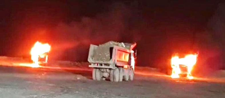 स्कैनिया वाहनों को आग के हवाले, एक युवक घायल,