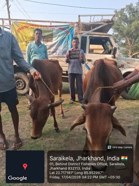 सरायकेला प्रखंड में मुख्यमंत्री पशुधन विकास योजना के तहत लाभुकों के बीच 2 यूनिट बैल का वितरण किया गया।