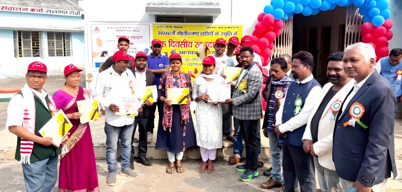 कुचाई कल्याण अस्पताल में कोल्हान नितिर तुरतुंग के द्वारा खरसावाँ गोली काण्ड के शहीदों के सम्मान में रक्तदान शिविर का आयोजन किया गया। शिविर में 51 यूनिट रक्त संग्रहित किया गया। रक्तदान शिविर का दीप प्रज्वलित कर विधिवत उद्घाटन खरसावां के विधायक दशरथ गागाराई, प्रखंड बिकास पदाधिकारी साधु चरण देवगम आदि ने किया। मौके पर ने रक्तदान का महादान बताते हुए श्री गागराई कहा कि विज्ञान काफी तरक्की कर चुका है लेकिन खून का विकल्प बना पाने में आज भी इंसान विफल रहा है रक्तदान करने से शरीर में एक नई ऊर्जा का संचार होता है। उन्होंने कहा कि मानवीय संवेद नी का एक प्रगति करण है रक्तदान खून की कणों मैं जीवन है जिसमें शरीर से रक्त लिया जाता है। रक्त किसी जाति धर्म मजहब कि नहीं दिखता है। यह देखता है जीवन और जीवन के मूल्य की रक्तदान से मानसिक संतुष्ट मिलती है। ऐसा इसीलिए क्योंकि आप के इस फैसले से किसी की जान बच जाती है। जब उसकी जरिए किसी को जिंदगी बचती है तो यह एक सुकून और खुशी का एहसास देता है। उन्होने कहा कि रक्तदान एक सराहनीय कार्य है जिसके लिए कोल्हान नितिर तुरतुंग बधाई के पात्र हैं सस्ता मानव हित में कार्य करते रहें रचनात्मक एवं सर आत्मक सोच के साथ स्वास्थ्य एवं स्वच्छता रखने के लिए रक्तदान करें। इस अवसर पर रक्तदान करने वाले में प्रमाण पत्र वितरण किया गया। इस दौरान मुख्य रूप से विधायक दशरथ गागाराई, बीडीओ साधु चरण देवगम, सांसद प्रतिनिधि मान सिंह मुंडा, कोल्हान नितिर तुरतुंग के अध्यक्ष मांझी राम जामुदा, प्रेम सिंह डागिल, राम चरण सोय, मुन्ना सोय, केपीसेठ सोय, मुन्ना सोय, प्रेम सिंह डागिल, रविन्द्र गिलुवा, मंगज सिंह मुंडा, गुरूचरण चोडा, लखिन्द्र भुमिज, रामेश्वर हेम्ब्रम, लक्ष्मी सोय आदि उपस्थित थे।