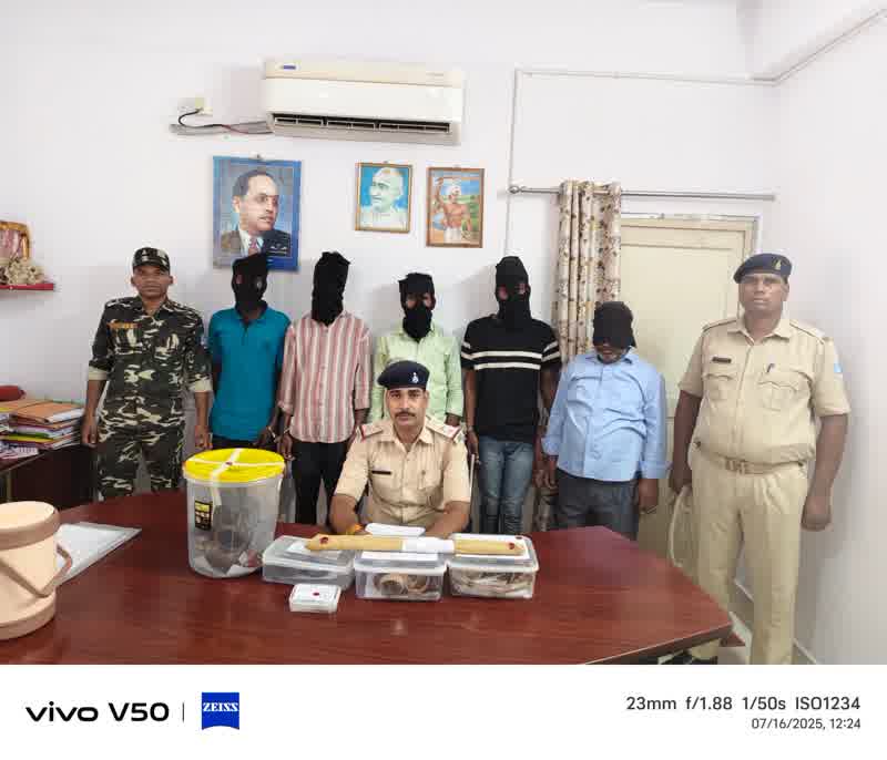 जहां वादी ने आरोप लगाया था कि उनके घर का ताला तोड़कर चोरों ने चांदी, पीतल, तांबे के बर्तन समेत पूजा का सामान एवं नकली जेवरात चोरी कर लिए हैं. इस मामले की गंभीरता को देखते हुए वरीय पदाधिकारी के निर्देश पर आदित्यपुर थाना प्रभारी बिनोद तिर्की के नेतृत्व में विशेष छापामारी टीम का गठन किया गया. टीम ने तत्परता से कार्रवाई करते हुए पांच अभियुक्तों को गिरफ्तार किया. गिरफ्तार आरोपियों में राजु लोहार (23 वर्ष), रोहित दास (20 वर्ष), अंकित हेसा (21 वर्ष), विरेंद्र प्रसाद (45 वर्ष), मो० फारुक (45 वर्ष) शामिल है, सभी आरोपी आदित्यपुर व जुगसलाई क्षेत्र के रहने वाले हैं. पुलिस ने इनकी निशानदेही पर चोरी किये गए 22 प्रकार के सामानों को बरामद किया है, जिनमें चांदी का गिलास और प्लेट, तांबा और पीतल के बर्तन, आर्टिफिशियल ज्वेलरी, देवी-देवताओं की मूर्तियां, पूजा की घंटी, लोहे की रॉड व अन्य घरेलू वस्तुएं शामिल हैं. बता दे मुख्य आरोपी राजु लोहार का आपराधिक इतिहास भी सामने आया है, जिसमें आर.आई.टी और कदमा थानों में चोरी और लूट के पुराने मामले दर्ज हैं.