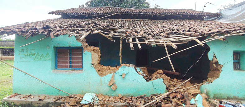 कुकड़ु मे झुंड से बीछड़े एक हाथी ने आधा दर्जन घरों को तोड़कर अनाजों को बनाया निवाला