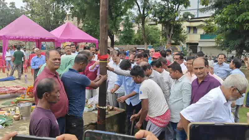 Seraikella आदित्यपुर-01 स्थित एम टाइप मैदान में श्रीश्री दुर्गा पूजा कमिटी, प्रवीण सेवा संस्थान द्वारा आयोजित होने वाले भव्य दुर्गा पूजा समारोह की तैयारी का श्रीगणेश हो गया है. मंगलवार को पूजा पंडाल निर्माण हेतु विधिवत भूमिपूजन संपन्न हुआ। यह पूजा पंडाल न सिर्फ क्षेत्र में खास पहचान रखता है, बल्कि लौहनगरी के प्रमुख आकर्षणों में भी शुमार होता है.