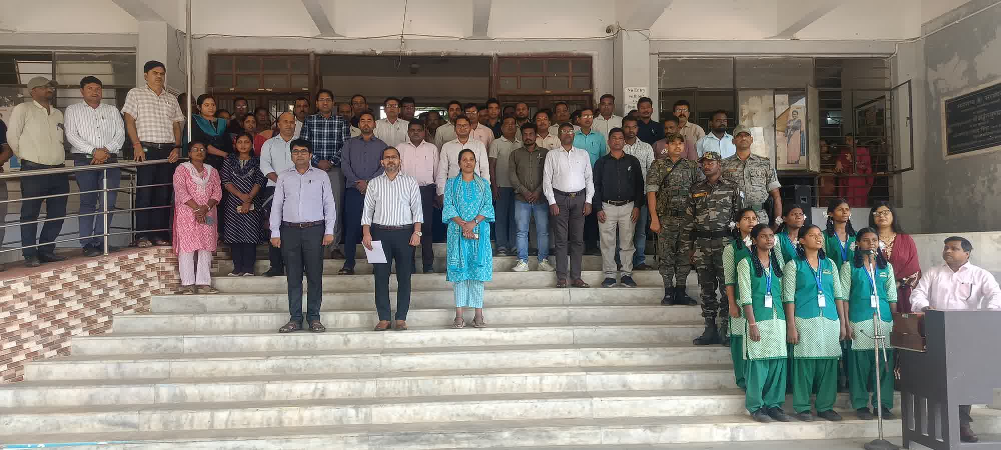 सरायकेला। राष्ट्रीय गीत “वंदे मातरम” की रचना के 150 वर्ष पूरे होने पर जिला समाहरणालय प्रांगण में विशेष कार्यक्रम का आयोजन किया गया। कार्यक्रम की अध्यक्षता करते हुए उपायुक्त नितिश कुमार सिंह ने उप विकास आयुक्त सुश्री रीना हांसदा की उपस्थिति में राजकीय कन्या उत्क्रमित उच्च विद्यालय सरायकेला के स्कूली बच्चों के साथ सामुहिक वंदे मातरम गीत गया गया।