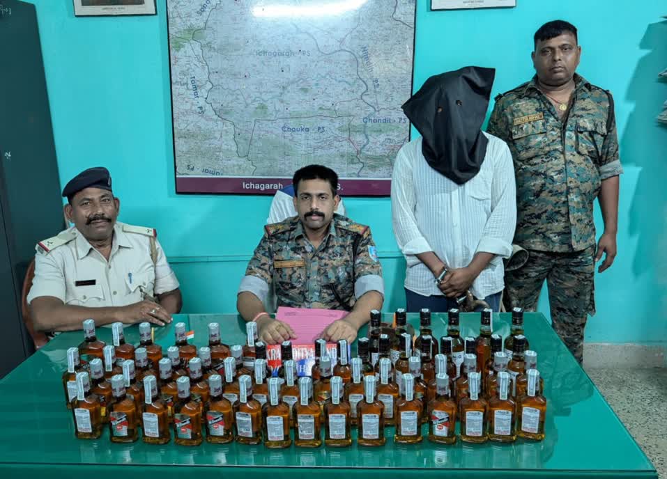 ईचागढ़ पुलिस ने रूगड़ी मे 60 बोतल अंग्रेजी शराब के साथ एक को भेजा जेल