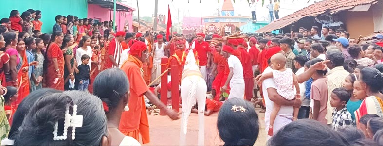 सरायकेला प्रखंड के मुरुप गांव में देवी दुर्गा मां के प्रति भक्तों की आस्था कहिए या देवी दुर्गा की असीम कृपा लेकिन यह सच है कि यहां माता को प्रसन्न करने के लिए भक्त कई आकर्षक व हैरतअंगेज करतब दिखाते हैं। यह आस्था व भक्ति आज नहीं बल्कि सदियों से चली आ रही है जो आज के कंप्यूटर युग में भी जारी है। जो बड़ी गर्व की बात है। यह अनुष्ठान ही इस गाँव की पहचान है। मुरुप गाँव के दुर्गा भक्त हेमसागर प्रधान ने जानकारी देते हुए बताया कि गांव में स्थित दुर्गा मन्दिर पर स्थापित माता देवी दुर्गा के जीवंत प्रतिमा की पूजा विधिवत दशमी से 16 दिन पहले जिउतिया से शुरू हो जाती है। दशमी के बाद एकादशी के दिन यहां माता की भव्य पूजा अर्चना की जाती है। एकादशी के दिन आगामी स्थानीय जलाशय से जल देवी की पूजा अर्चना कर भक्तों द्वारा दंडी पाठ करते हुए मन्दिर परिसर पहुंचेंगे। मन्दिर पहुंचने से पहले भक्तों से लोग अपने घरों में परिवार की सुख शांति व समृद्धि हेतु पूजा अर्चना कराते है। मन्दिर परिसर में मां पाऊड़ी के समक्ष 20 फीट लंबा व दो फीट चौड़ा व गढ्डा खोदकर अग्निकुंड बनाया गया है। यहां देवी माता अग्नि कुमारी की पूजा अर्चना की जाती है। पूजा के बाद भक्त देवी को प्रसन्न करने के लिए दहकते अंगारों पर नंगे पांव दौड़ेंगे। देवी दुर्गा की असीम भक्ति की कृपा से इन भक्तों के पांव में छाले तक नहीं पड़ते हैं। मन्नत के अनुसार महिला व पुरुष अपने अराध्य देव को प्रसन्न करने के लिए कंटीले झाड़ियों पर लेटकर भक्ति की परीक्षा देते हैं। भक्तों के करतब को देखने के लिए प्रतिवर्ष यहां पड़ोसी जिला समेत आसपास के हजारों भक्तों की भीड़ उमड़ पड़ती हैं, जिसकी निगरानी श्री शुभनाथ युवा क्लब, मुरुप द्वारा की जाती है। क्लब के अध्यक्ष अजीत प्रधान ने बताया कि देवी दुर्गा की भव्य पूजा तैयारी जोरों पर है। आगे उन्होंने बताया कि पूजा में पहुंचे भक्तों की सेवा के लिए क्लब के युवा वैलेंटियार तत्पर रहेंगे। यहां के मन्दिर में देवी दुर्गा की पूजा कई साल से पूजारी के रूप में रामानाथ होता, यदुनंदन होता, गौर दास व देहुरी कुथलु प्रधान आदि द्वारा कराई जा रही है। इस दौरान मुख्य रूप से पुजारी पंडित रामनाथ होता, पुजारी गौर दास, देहुरी कुथलु प्रधान, श्री शुभनाथ युवा क्लब मुरुप के अध्यक्ष अजीत प्रधान, उपाध्यक्ष गोराचाँद हो, सचिव मनोज प्रधान, विरेश प्रमाणिक, रंजीत प्रधान, अचिन्तो प्रधान समेत अन्य युवागण दुर्गा की पूजा तैयारी में जुट गए है।