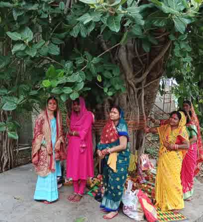 Kharsawan खरसावां-कुचाई के आस पास के क्षेत्रों में सुहागन महिलाओं ने विधिव्रत रखकर सावित्री-सत्यवान व इष्टदेवों की पूजा अर्चना कर अपने पति के दीर्घायु होने की कामना की। इसी पूजा को वट सावित्री की पूजा कहा गया है। इस व्रत के परिणामस्वरूप सुखद और संपन्न दांपप्त जीवन का वरदान प्राप्त होता है। वट सावित्री के दिन सुहागन महिलाओं ने पूरे 16 श्रृंगार कर बदगद के पेड़ के नीचे जुटे और बांस का पंखा, चना, लाल या पीला धागा, धूपबती, फूल, कोई भी पांच फल, जल से भरा पात्र, सिंदूर, लाल कपड़ा आदि पूजा सामानों के साथ पूजा अर्चना की। वही पैड के नीचे बैठक कर सत्यवान एवं सावित्री की कथा सुनी। इस दौरान वट वृक्षों के नीचे दिनभर श्रद्वालु महिलाओं की और से पूजा अर्चना का दौर जारी रहा सुहागिन महिलाएं बरगद पेड में परिक्रमा कर धागा लपेटा। इस दौरान सत्यवान एवं सावित्री की कथा सुनकर हाथ के पंखे से हवा का र्स्पश करायी। दर्जनों की संख्या में विवाहित महिलाओं ने सत्यवान एवं सावित्री एवं यमराज की पूजा की। पूजा अर्चना में शामिल महिलाएं रंग बिरंगी नये परिधानों से सुसज्जित थी। जबकि कई नव दंपतियों की पहली वट सावित्री रहने के कारण विधि विधान से पूजा अर्चना की गई।