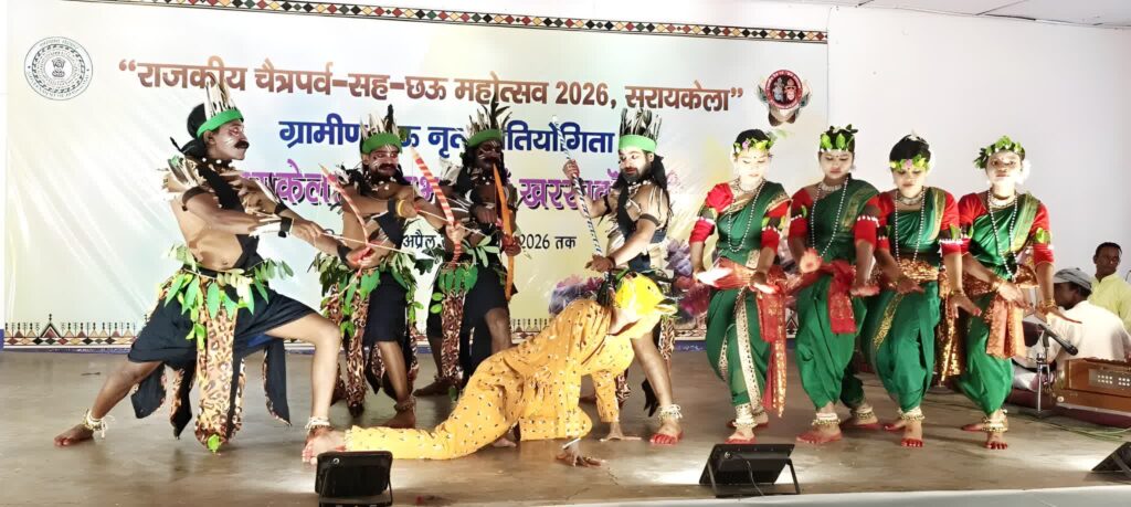 सरायकेला स्थित राजकीय छऊ नृत्य कलाकेंद्र प्रेक्षागृह में आयोजित राजकीय चैत्र पर्व सह छऊ महोत्सव 2026 के अंतर्गत तीसरे दिन खरसावां शैली की ग्रामीण छऊ नृत्य प्रतियोगिता का आयोजन किया गया।