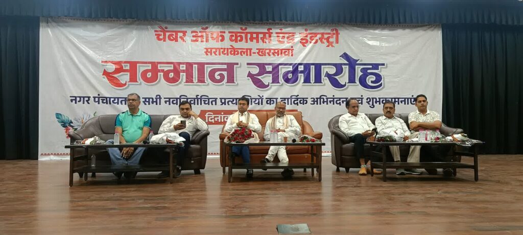 सरायकेला: चैंबर ऑफ कॉमर्स एंड इंडस्ट्री, सरायकेला-खरसावां द्वारा नगर पंचायत सरायकेला के नवनिर्वाचित अध्यक्ष मनोज चौधरी, उपाध्यक्ष अविनाश कवि एवं सभी वार्ड पार्षदों के सम्मान में भव्य स्वागत समारोह का आयोजन किया गया। कार्यक्रम बुधवार की शाम जिला मुख्यालय स्थित टाउन हॉल में संपन्न हुआ।