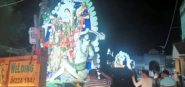शारदीय नवरात्रि के अंतिम पड़ाव पर मां दुर्गा के मूर्तियों का विसर्जन कर दुर्गा पूजा का समापन किया गया। खरसावां-कुचाई क्षेत्र में दुर्गा पूजा की शुरुआत षष्टी तिथि से होती है। इस उत्सव का समापन दुर्गा विसर्जन के साथ किया गया। विसर्जन के दौरान विभिन्न पूजा समितियों के द्वारा पारंपरिक तरीके से विधि विधान के तहत विसर्जन जुलूश धुमधाम से निकाला गया। साथ ही बाजे-गाजे के साथ मां दुर्गा का विसर्जन किया गया। विजय दशमी को लेकर दो कथाएं प्रचलित हैं। पहली कथा के अनुसार इसी दिन मर्यादा पुरुषोत्तम राम ने रावण का वध किया था। दूसरी कथा के अनुसार मां दुर्गा ने इसी दिन दैत्य महिषासुर का वध किया था। मां दुर्गा के भक्त मां की मूर्ति का विसर्जन के बाद ही व्रत का पारण करते हैं। खरसावां में सरकारी दुर्गा पूजा समिति के द्वारा बुधवार को विजय दशमी पर मां दुर्गा के मुर्ति का विसर्जन विधि विधान के तहत कर खरसावां के सोना नंदी में कर दिया गया। जबकि खरसावां के सेवा संघ पूजा समिति तलसाही, श्री श्री दुर्गा पूजा समिति बेहरासाई के द्वारा खरसावां सोना नंदी में, श्री श्री आमदा ठाकुरबाडी पूजा समिति, ज्ञान मंदिर पूजा समिति नयाबजार आमदा, रेलवे कालोनी दुर्गा पूजा समिति राजखरसावां के द्वारा तलाब, नदी सहित कुचाई दुर्गा मंदिर का मुर्तियों का विसर्जन सोना नदी कुचाई में किया गया।