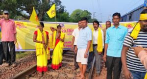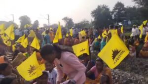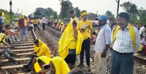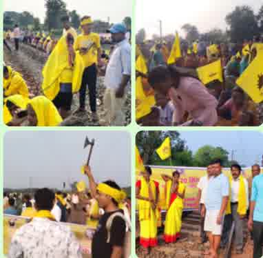सरायकेला के सीनी में कुड़मी समाज का रेल रोको आंदोलन, प्रदर्शनकारियों ने हावड़ा मुंबई रेल ट्रैक को किया जाम,