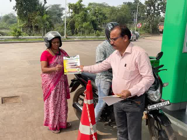परिवहन विभाग, झारखंड सरकार के निर्देशानुसार चल रहे “रफ़्तार घटाओ, सुरक्षा बढ़ाओ” जागरूकता सप्ताह के तहत आज दिनांक 04 नवम्बर, 2025 को जिला परिवहन पदाधिकारी, सरायकेला–खरसावाँ श्री गिरिजा शंकर महतो द्वारा जिले के विभिन्न पेट्रोल पम्पों पर सड़क सुरक्षा संबंधी जनजागरूकता अभियान चलाया गया। इस दौरान जिला सड़क सुरक्षा टीम के सदस्यों ने वाहन चालकों एवं आम नागरिकों को ओवर स्पीडिंग से बचने, हेलमेट एवं सीट बेल्ट के अनिवार्य प्रयोग, तथा यातायात नियमों के पालन का संदेश दिया।