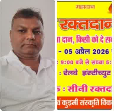 रेलवे इंस्टीट्यूट में सीनी रक्तदान समूह का महा रक्तदान शिविर 5 को