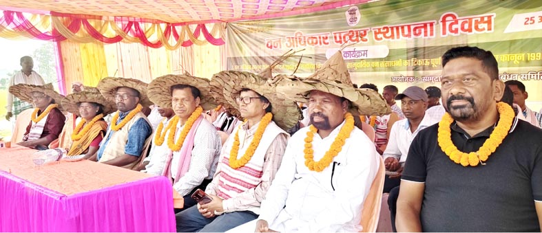 इस दौरान सभा को संबोधित करते हुए आइसीएफजी के केन्द्रीय सदस्य सोहन लाल कुम्हार ने कहा कि आज द्वितीय वनाधिकार पत्थरगाड़ी स्थापना दिवस मनाया जा रहा है। लेकिन दिल से खुशी नही मना रहे है। जो अधिकार हमको मिलना चाहिए वह अधिकार अभी तक नही मिला है। जंगल का संरक्षण, प्रबंधन करने एवं पुनजीवित करने का अधिकार अभी तक नही मिला है। अभी सिर्फ उपयोग करने का अधिकार मिला है।