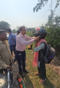सरायकेला-खरसावां: उपायुक्त के निर्देश के आलोक में सोमवार को दुगनी क्षेत्र में सड़क सुरक्षा के दृष्टिकोण से विशेष जांच अभियान चलाया गया। इस अभियान के दौरान बिना हेलमेट दोपहिया वाहन चलाने वालों के खिलाफ सख्त कार्रवाई की गई। करीब 10 वाहन चालकों से जुर्माना वसूला गया और उन्हें हेलमेट भी वितरित कर जागरूक किया गया।
