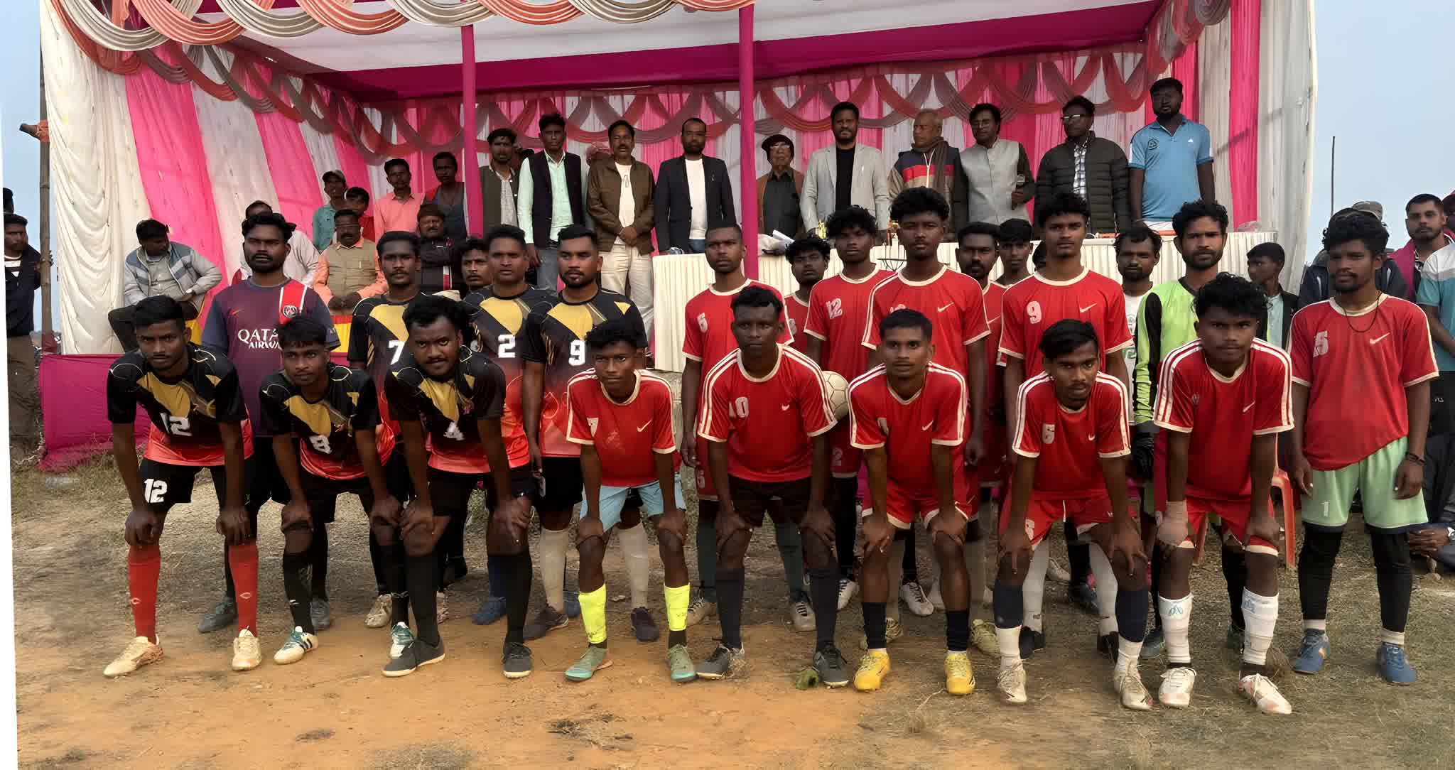 सरायकेला प्रखंड के हातिया मैदान में न्यू सनराइज क्लब के द्वारा आयोजित तीन दिवसीय फुटबॉल प्रतियोगिता-2025 का समापन हो गया। फुटबॉल प्रतियोगिता के समापन समारोह में मुख्य अतिथि के रूप में पहुंचे खरसावां विधायक दशरथ गागराई आदि ने फाइनल मैच का शुभारंभ खिलाड़ियों से परिचय प्राप्त कर और फुटबॉल को किक मारकर किया। इस प्रतियोगिता के फाइनल मैच में जल ही जीवन है साहेबगंज की टीम को 2-1 से पराजित कर ब्लू बेताल की टीम चौम्पियन बनी। फुटबॉल प्रतियोगिता में कोल्हान प्रमंडल से 32 टीमों ने भाग लिया। प्रतियोगिता की विजेता टीम ब्लू बेताल को 20 हजार, उपविजेता टीम जल ही जीवन है साहेबगंज को 15 हजार, तृतीय स्थान में रहे सावन स्पोटिंग तथा चौथे स्थान पर रहे केडी फाइटर की टीमों को 10-10 हजार तथा पांचवा स्थान प्राप्त करने वाले मंगल स्पोटिंग 6 हजार रुपए नकद पुरस्कार देकर सम्मानित किया गया। इसके अलावा बेस्ट गोलकीपर, मैन ऑफ द मैच, बेस्ट प्लेयर का पुरस्कार भी देकर सम्मानित किया गया। मौके पर श्री गागराई ने खिलाड़ियों का हौसला बढ़ाते हुए कहा कि खेल के विकास के लिए सरकार प्रयासरत है। खेल महज मनोरंजन का साधन नहीं रहा, बल्कि बेहतरीन कॅरियर निर्माण का एक शानदार विकल्प भी साबित हुआ है। इस दौरान मुख्य रूप से खरसावां विधायक दशरथ गागराई, मुखिया तापस कुमार महतो, राजू मुखी, भारत मंडल, आनेश महतो, पाली हो, सुनील लेयागी, सिरील हो आदि उपस्थित थे।