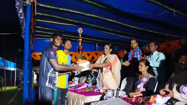 विजेता बजंरगी स्टार की टीम को मुख्य अतिथि सांसद जोबा माझी के हाथों एक लाख रुपये नगद एवं ट्रॉफी प्रदान किया गया। साथ ही उप विजेता एसडीएम-11 को 70 हजार रुपये और ट्रॉफी दिया गया। मुख्य अतिथि सांसद जोबा माझी ने खिलाड़ियों को संबोधित करते हुए कहा खेल एक ऐसा माध्यम है जो हमें अनुशासन और धैर्य की सीख देती है। कहा कि हार और जीत खेल का एक हिस्सा हैं लेकिन खेल के दौरान किये गये गलतियों से हमें सीख मिलती हैं। सांसद ने खिलाड़ियों को निबंधित टीम से खेलने का सुझाव देते हुए कहा निबंधित टीम से खेलने पर आपको आगे बढ़ने का अवसर प्राप्त होता हैं। कहा कि खेल को बढ़ावा देने के लिए सरकार योजनाएं चला रही है, नौकरी दे रही है। इसलिए लक्ष्य निर्धारित कर खेले। भारी बारिश के बीच खेल का आनंद लेने के लिए बड़ी संख्या में ग्रामीण उपस्थित रहे। इस मौके पर विशिष्ट अतिथि के रूप में सीओ ऋषिदेव कमल, झामुमो प्रखंड अध्यक्ष जुडिया सिंकू, जिप सदस्य प्रमिला पिंगुवा, मुखिया रीना सिंकू, राजेश सिंकू, गोपाल हेम्ब्रम, कालीपद सोरेन आदि खिलाड़ियों के उत्साह वर्धन के लिए उपस्थित रहे।