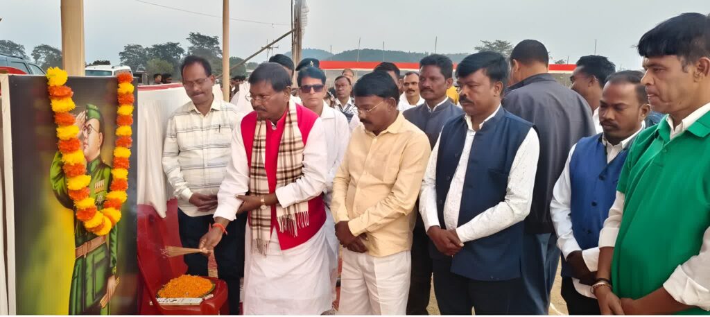 खरसावां के गोंदपुर हैलीपैड मैदान में मां आर्कषिणी खेल विकास समिति सिमला द्वारा अमृत महोत्सव और नेताजी सुभाष चंद्र बोस के जयंती पर दो दिवसीय नेताजी नॉकआउट फुटबॉल कप- 2026 का आयोजन किया गया है। इस फुटबॉल प्रतियोगिता के फाईनल मैच के टाई ब्रेकर मे हाईबुरू सीएनटी एक्स को 4-3 से पराजित कर कृष्णा एफसी की टीम चैम्पियन बनी। फुटबॉल प्रतियोगिता के फाईनल मैच का शुभआरंभ झारखंड के पूर्व मुख्यमंत्री अर्जुन मुंडा, खरसावां के पूर्व विधायक मंगल सिंह सोय ने नेताजी सुभाष चंद्र बोस की चित्र पर श्रद्धा सुमन अर्पित कर श्रद्धांजलि दी।