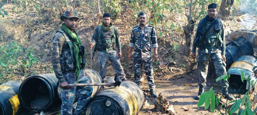 पुलिस अवैध शराब कारोबारियों के विरूद एक्शन मोड पर, पुलिस ने खरसावां के रामपुर जंगल में संचालित अवैध महुआ शराब भट्टी ध्वस्त कर 400 किलो जावा महुआ किया नष्ट,